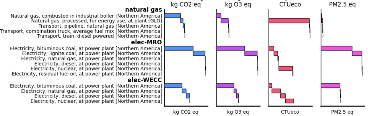 Waterfall chart showing contribution analysis for water heating (USLCI)